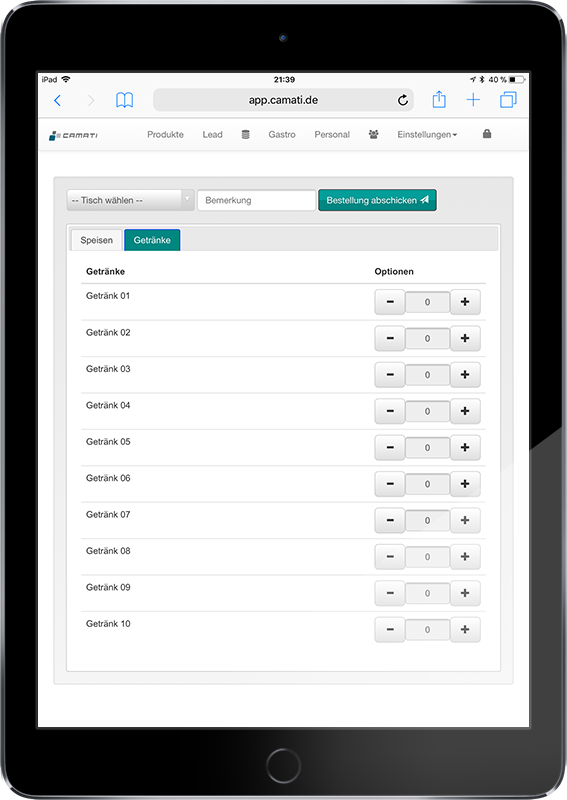 Schnell einen Kaffee bestellen oder komplexe gastronomische Aufgaben mit verschiedenen Theken und Bondruckern übernimmt die Order APP. Einfach zu konfigurieren, leicht zu bedienen. Bestellen Sie einfach via Handy oder I Pad. Die Bestellungen werden automatisch und kabellos an der Theke gedruckt.